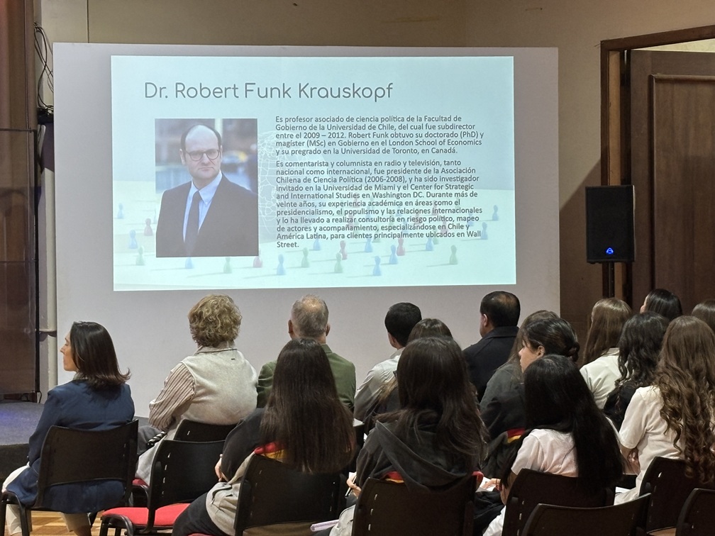 Para ello, contamos con la presencia del Doctor en Ciencia Política, Sr. Robert Funk S., profesor asociado de la Facultad de Gobierno de la Universidad de Chile, Doctor por la London School of Economics and Political Science y Bachelor of Arts de la University of Toronto.
