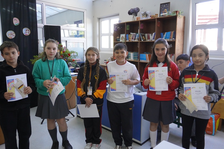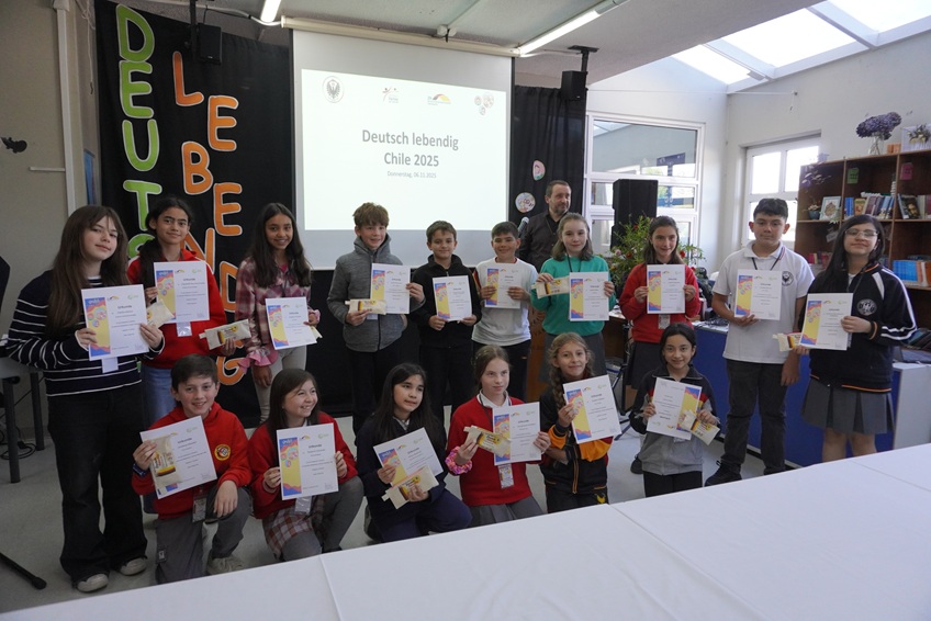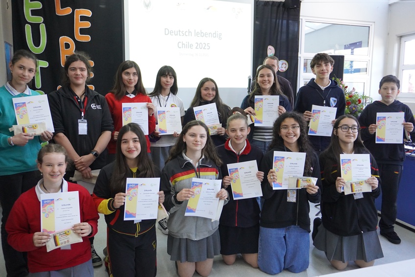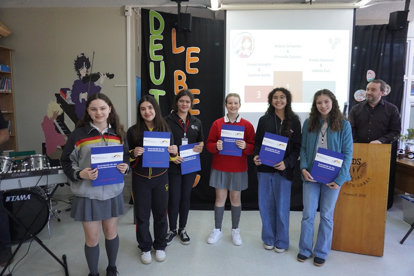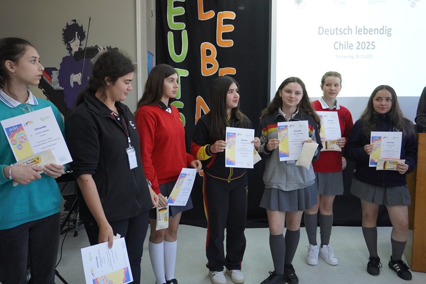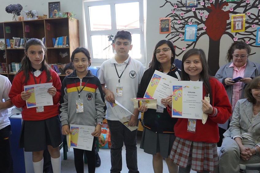 Agradecemos a Frau Francisca Heise del departamento de alemán, quien acompañó a nuestras representantes: Aurora Gajardo en la categoría “Vorlesen” y a Rebeca Schwerter en la categoría “Sprechende Bilder”. Felicitamos a ambas estudiantes por representar con orgullo a nuestro colegio, y especialmente a Rebeca Schwerter, quien además, obtuvo el primer lugar de su categoría junto su pareja Fernanda Carrasco del DS La Serena.