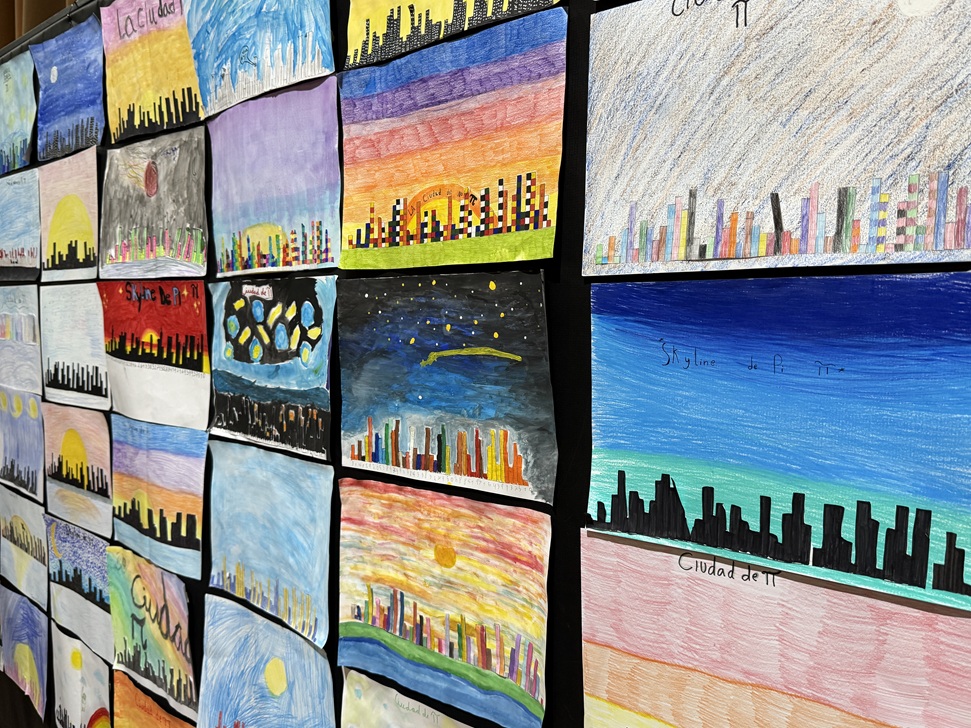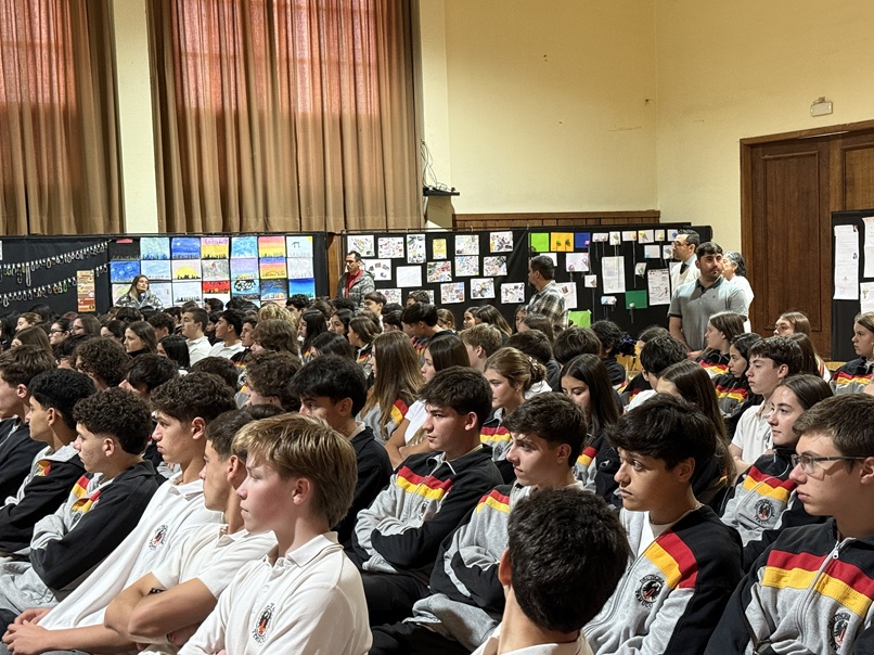 Exposición de trabajos en el aula grande desarrollados por estudiantes de distintos niveles, en los cuales se evidencia el uso de la matemática en la vida cotidiana.